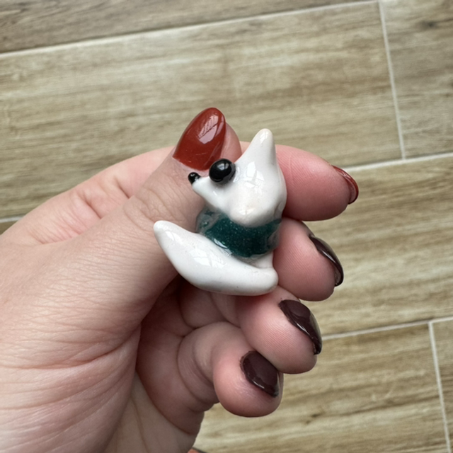 Mały lisek polarny w zimowym (zielono brokatowym) szaliczku, koleżka ma 2-3cm i chce ci dotrzymać towarzystwa na codzień 🦊