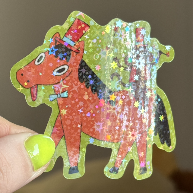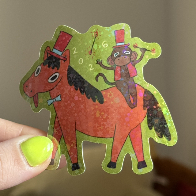 Derpuń i KlapKlap świętują nowy rok! Rok 2026 jest rokiem ognistego konia w kalendarzu chińskim - naklejka z tej właśnie okazji!